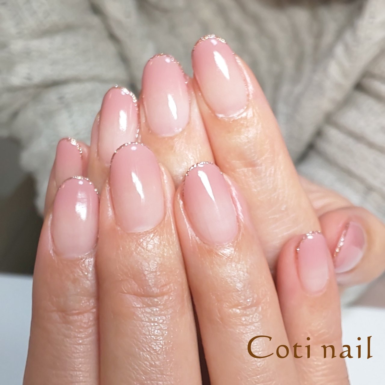 上品グラデ 先端ラメライン ジェルネイル Nail Salon Cobes