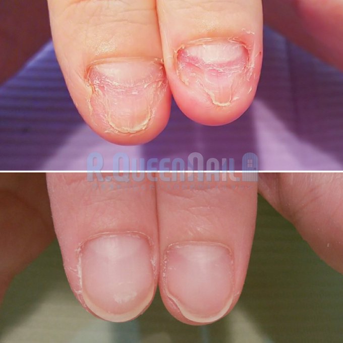 深爪 初回の施術でこれくらいきれいになります 爪をきれいにしたい人のためのネイルサロン 千葉市美浜区 中央区 R Queennail